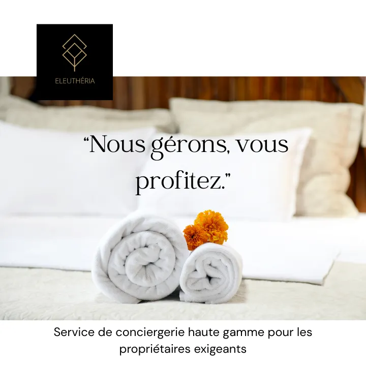 Eleutheria s’engage à proposer une conciergerie sérieuse, humaine et transparente, avec un suivi réactif, une communication claire et une vraie fiabilité, pour que votre location soit gérée avec sérénité et constance.